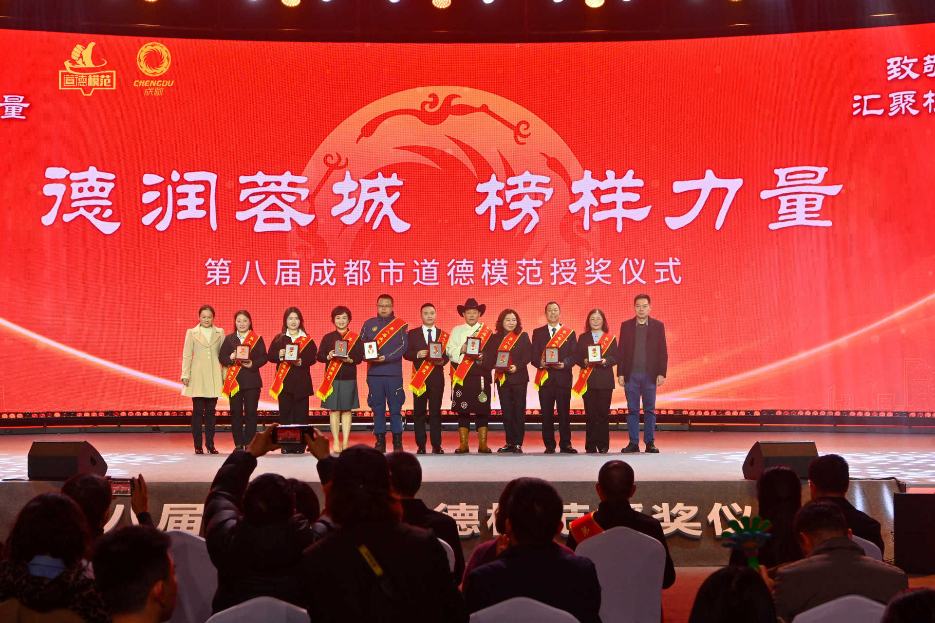 在成都,总有人用平凡点亮微光,用善意传递幸福。12月22日,由成都市委宣传部、市委政法委、市文明办等部门联合主办的“德润蓉城 榜样力量”第八届成都市道德模范授奖仪式举行,为50人(组)来自各行各业的道德模范授奖,并分享他们的故事。