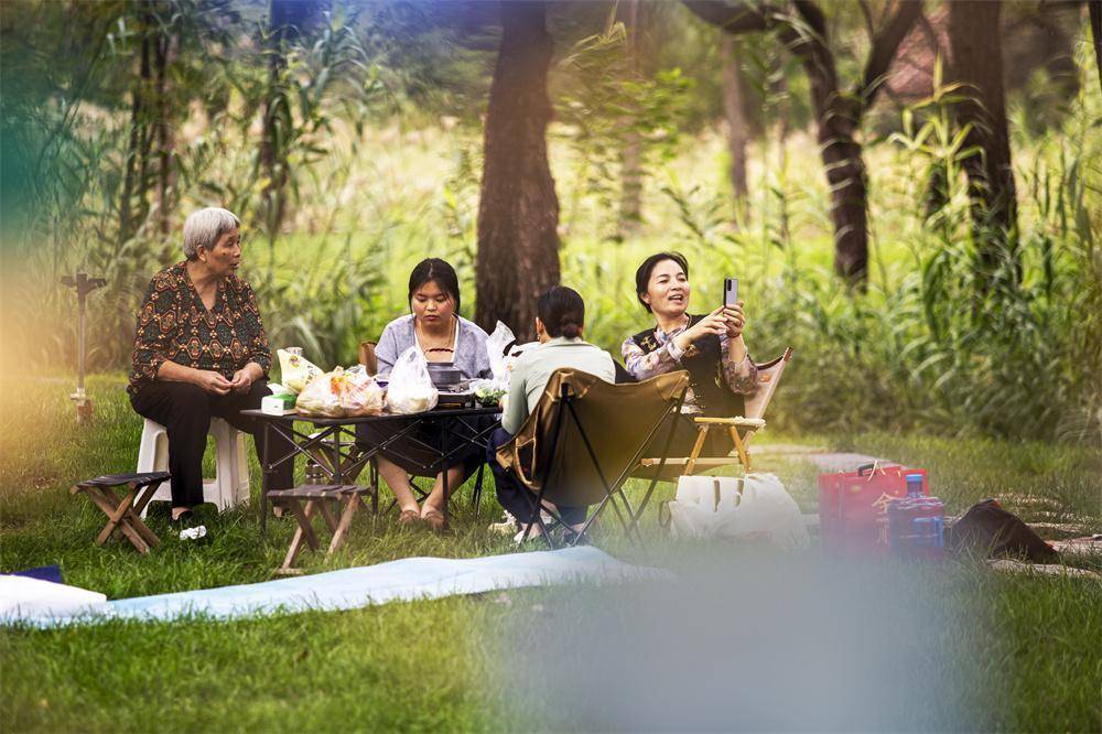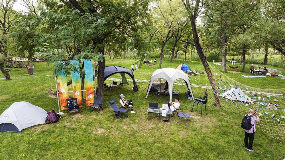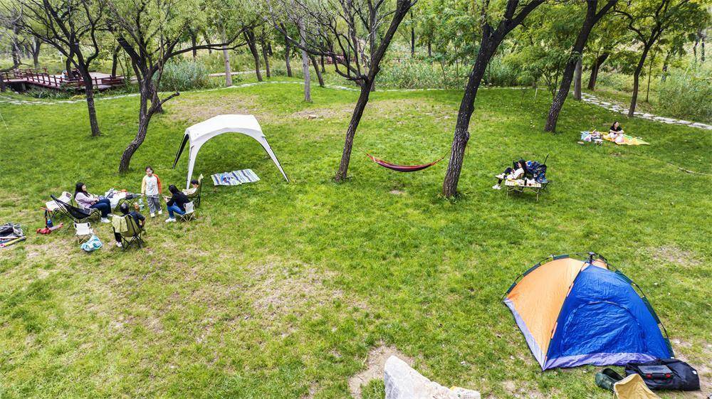 10月1日,河北省邯郸市复兴区沁河郊野公园,市民和游客正在露营游玩。聂长青摄10月1日,河北省邯郸市复兴区沁河郊野公园,市民和游客沿沁河岸漫步,听沁泉水潺潺,在林木成荫的草地上露营休憩,尽享国庆假日乐趣。沁河郊野公园成为邯郸和周边地区群众假期休憩旅游的“打卡地”。(聂长青)